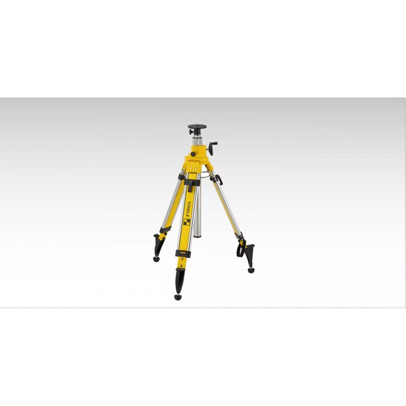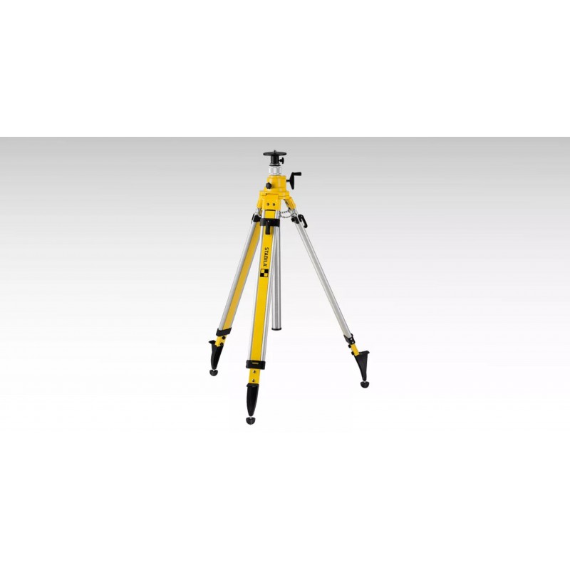 Trípode para construcción de aluminio con columna de elevación para un posicionamiento exacto del láser a la altura de trabajo deseada.