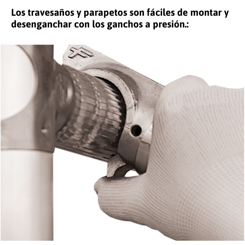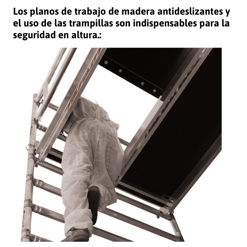 La subida es cómoda gracias a una menor distancia entre peldaños, 7 peldaños por cada lateral en lugar de los 6 que se suelen poner en los laterales de los andamios disponibles en el mercado.
