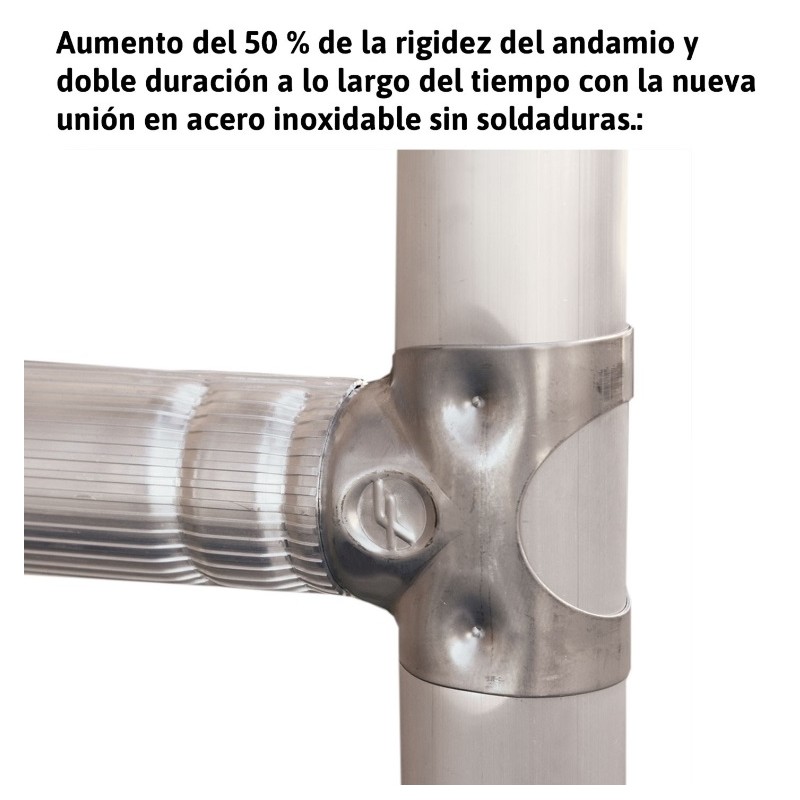 Top system está hecho de aluminio extruido con espesor mínimo de 1,5 mm. El aluminio extruido tiene más elasticidad respecto a materiales electrosoldados; proporcionando una mayor resistencia y evitando colapsos estructúrales imprevistos.