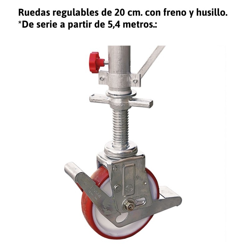 La subida es cómoda gracias a una menor distancia entre peldaños, 7 peldaños por cada lateral en lugar de los 6 que se suelen poner en los laterales de los andamios disponibles en el mercado.