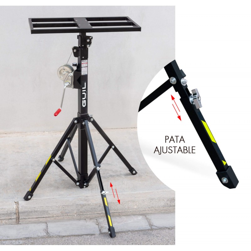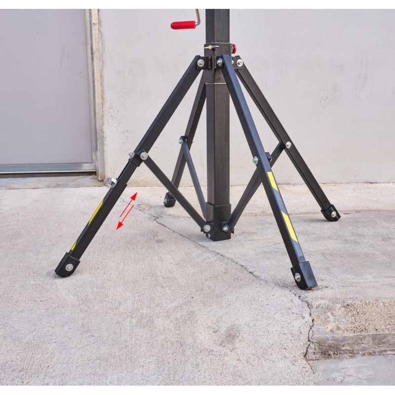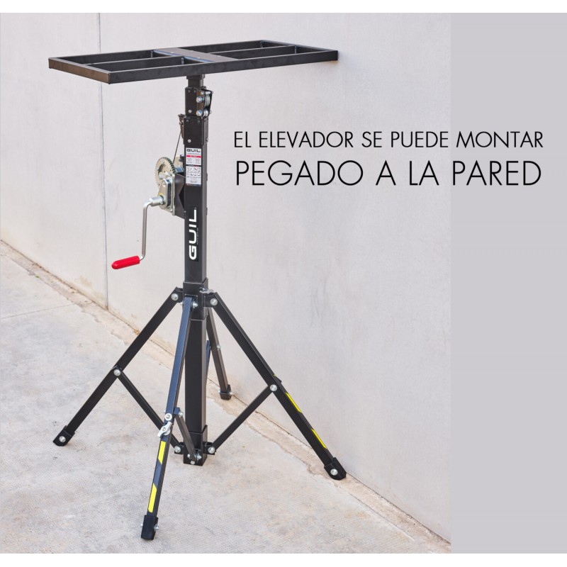 El diseño plegable de la base tipo “paraguas” de cuatro patas, junto con su reducido tamaño y su sencillo manejo convierten al Elevador ELC-720/I en el complemento ideal para trabajos que se realizan en pequeños espacios (tanto en interiores como en exteriores).