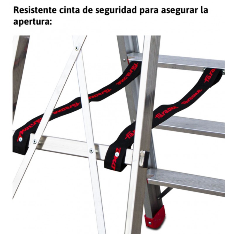 Escalera en aluminio súper profesional con peldaños cómodos.