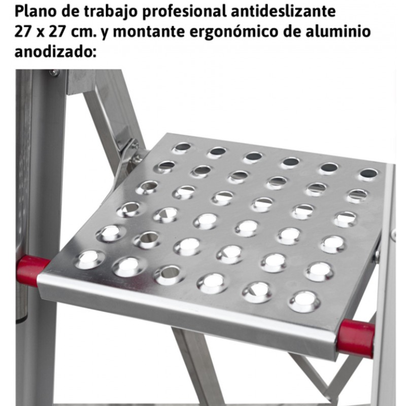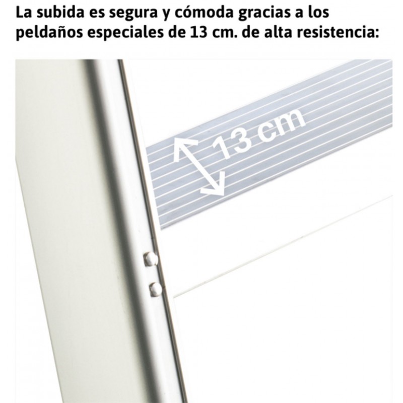 Escalera en aluminio súper profesional con peldaños cómodos.