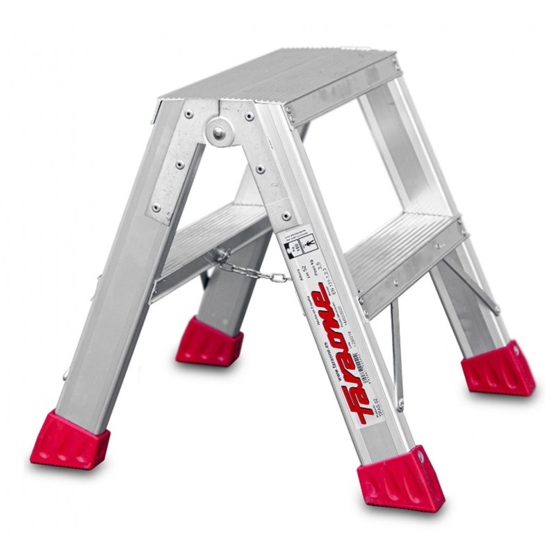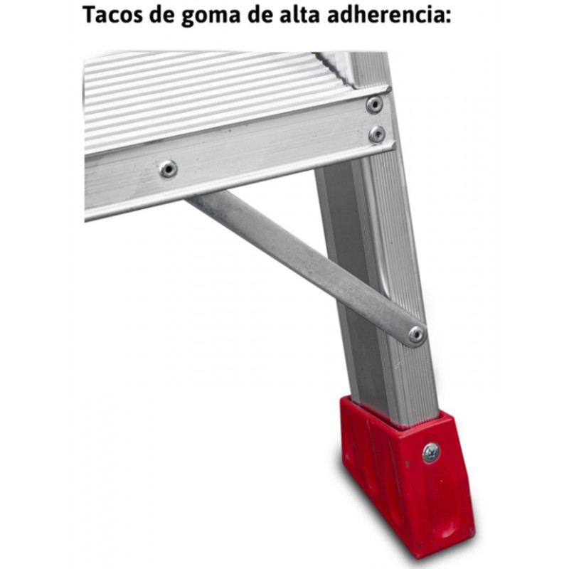 El modelo TPAS está fabricado en aluminio, posee un sistema de bisagras rígido y resistente entre los dos tramos de subida, un sistema anti cierre seguro, peldaños de 8 cm y amplios tacos de goma con un buen agarre a la superficie. Disponible desde 2 a 4 peldaños. Este modelo cumple con la normativa EN-131-1,2,3. Dispone de certificado de conformidad y manual de instrucciones. La carga máxima que aguanta es de 150 kg.