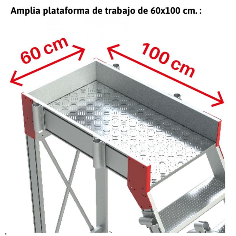 Escalera de aluminio con plataforma y cuatro ruedas | Inclinación de 60º 7 Peldaños