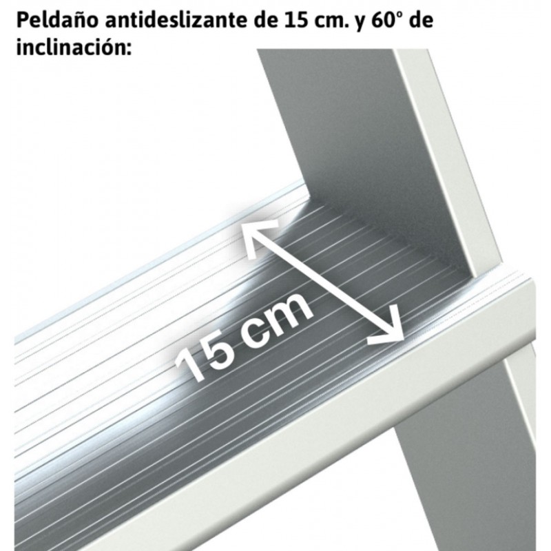 Escalera con plataforma y base con ruedas con peldaños de 15 cm y 60º de inclinación: