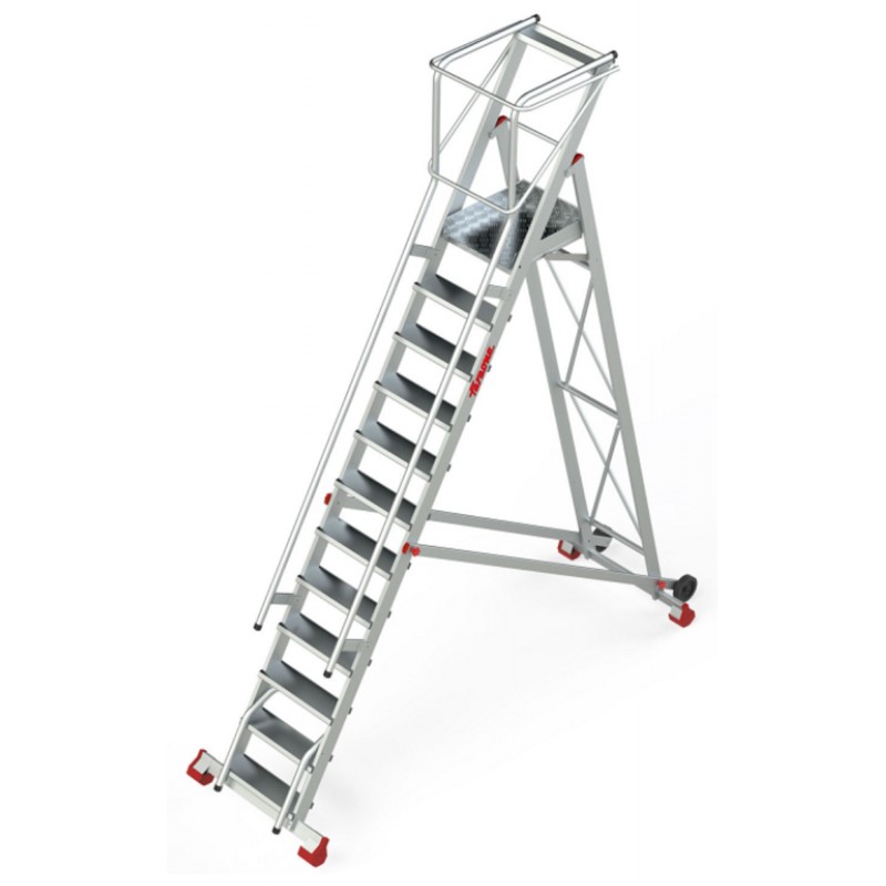 Escalera de almacén con plataforma y ruedas 12 Peldaños