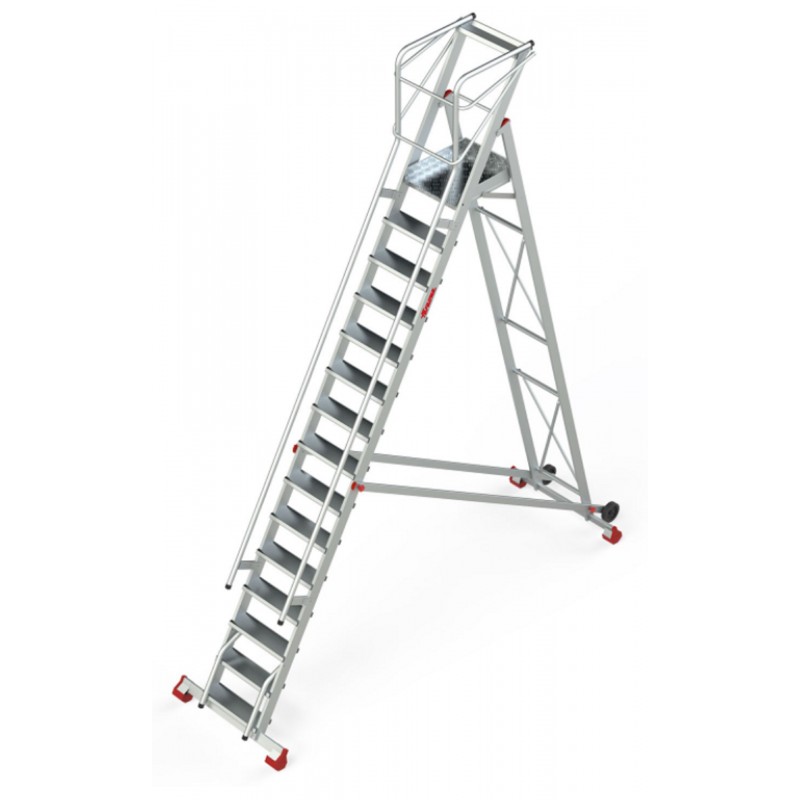 Escalera de almacén con plataforma y ruedas 15 Peldaños