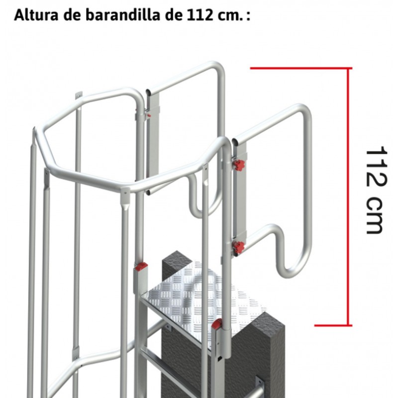 La SVS.2 es una escalera vertical de seguridad con jaula de protección y barandilla para desembarcar en total seguridad. Tanto la escalera como la jaula están fabricados en aluminio en cuanto no se oxida con el agua. Se suministra completa de cierre inferior de seguridad que evita el acceso a personal no autorizado, soportes con pletinas que sirven para la fijación a pared y barandilla de seguridad de 112 cm de altura que sobresale para desembarcar desde la escalera al techo de la nave en total seguridad. La escalera vertical con jaula modelo SVS.2 se fabrica según la altura de pared facilitada por el cliente y opcionalmente se puede pedir con la jaula de protección lacada de cualquier color. Como opcional se puede pedir con el primer tramo de escalera desmontable. Este producto cumple con la normativa europea EN 14122-4 y se entrega junto con el certificado de conformidad, la carga máxima que aguanta es de 150 kg.