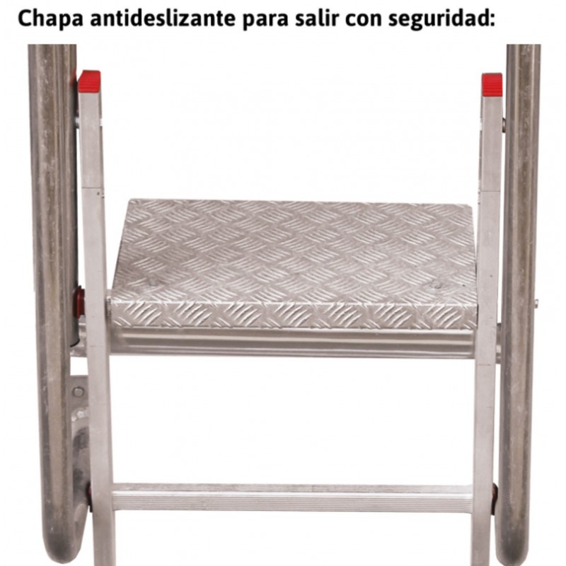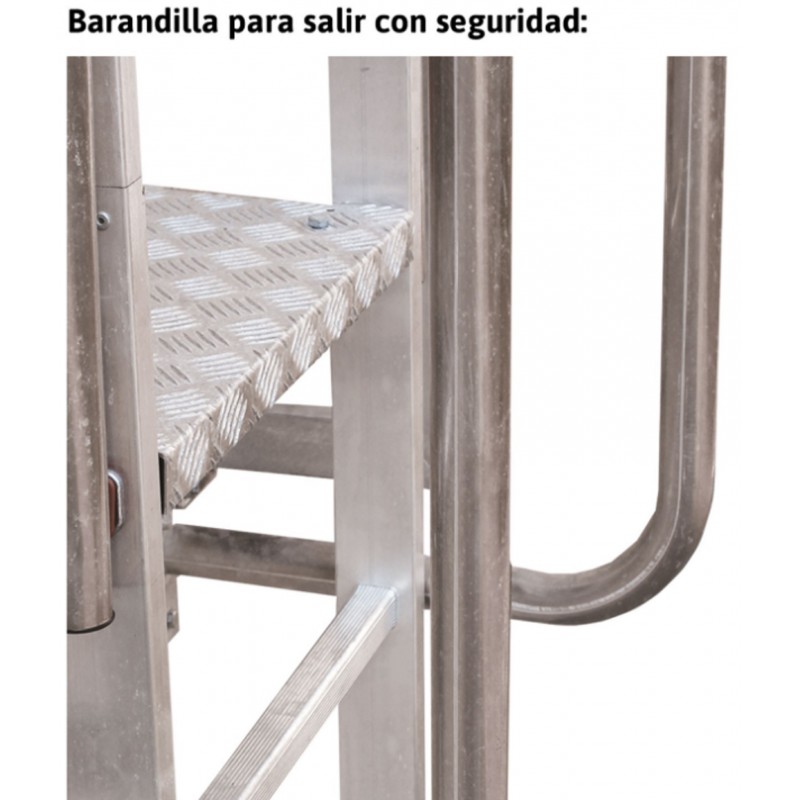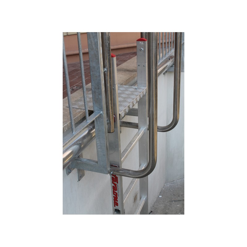 La SVS0 es una escalera vertical con barandilla para desembarcar con total seguridad. Es un producto indicado para subirse a entreplantas o altillos con alturas no superiores a 3 m. Se suministra con soportes, pletinas para fijar la escalera a la pared y con barandilla de seguridad de 112 cm de altura.
