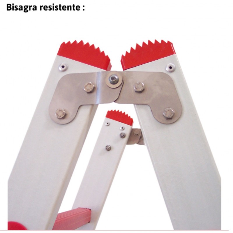 El modelo 2TFVT está compuesto de 2 tramos fabricados en fibra de vidrio. Este modelo está diseñado para trabajar en posición auto- estable con doble subida, posee un sistema de bisagras y anti- cierre seguro y resistente. Además, está equipado con una base estabilizadora, en ambos tramos, con tacos de goma antideslizantes y adherentes a la superficie del suelo. Este modelo es ideal para trabajos con riesgos eléctricos. Este modelo cumple con la normativa EN-131y EN 61478. Dispone de certificado de conformidad y manual de instrucciones. La carga máxima que aguanta es de 150 kg.