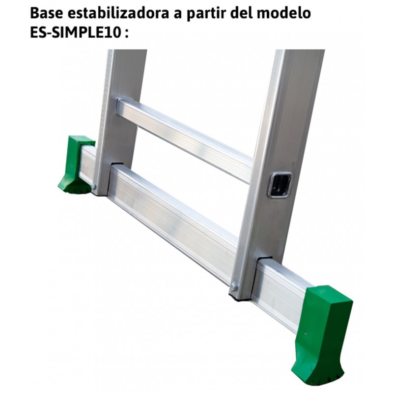 Tiene los peldaños, del tramo anterior, antideslizantes con 3 cm de profundidad y la base estabilizadora con 2 tacos grandes de goma que le confiere mayor seguridad y agarre sobre todo en suelos de tierra que no estén correctamente nivelados. Dispone de una bisagra robusta que permite de nivelar el tramo para trabajar en desnivel, un bloqueo de seguridad mediante un gancho con muelle práctico y seguro.