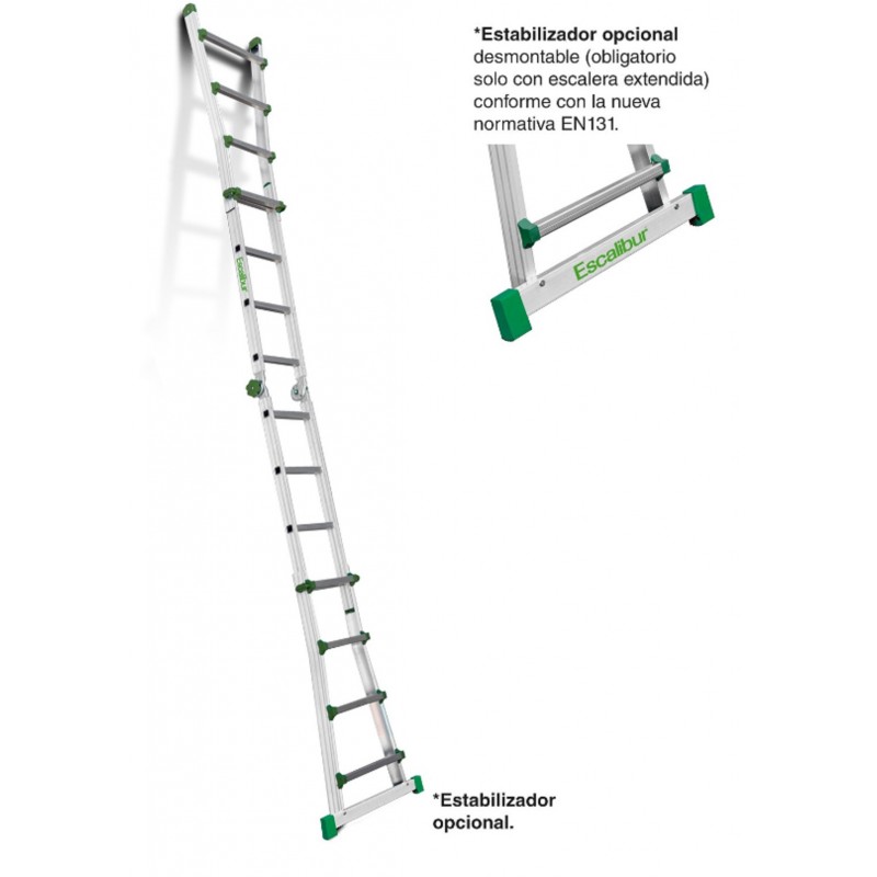 Este producto cumple con la normativa europea EN 131,1,2,3,4 y se entrega junto con el certificado de conformidad, la carga máxima que aguanta es de 150 kg.