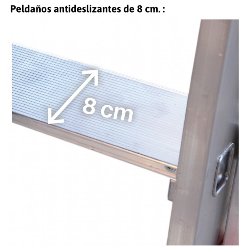 Este producto cumple con la normativa europea EN 131-1,2,3 y se entrega junto con el certificado de conformidad, la carga máxima que aguanta es de 150 kg.