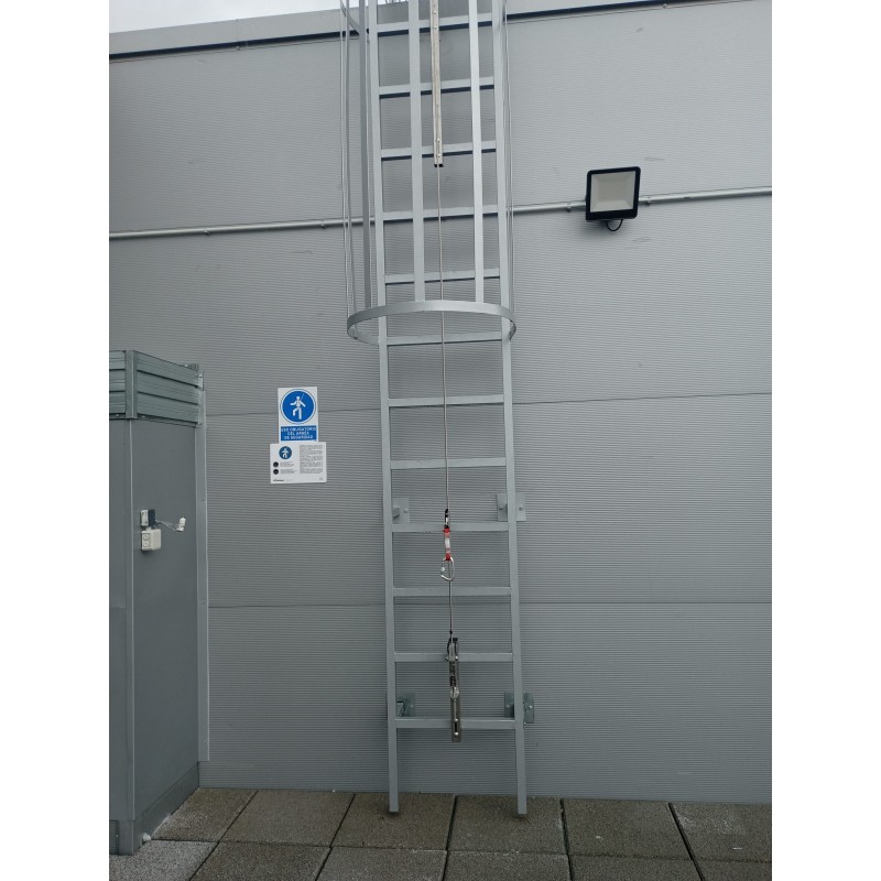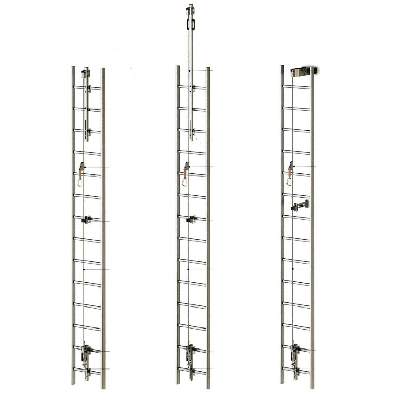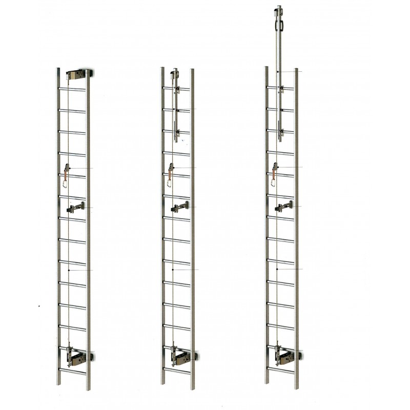 Las escaleras con línea de vida vertical VERTIGRIP A4 garantiza una excelente resistencia a la corrosión en ambientes marinos e industriales, gracias a los elementos de acero inoxidable AISI 316. Incluye un dispositivo deslizable por cable con amortiguador integrado, que permite el ascenso y descenso de forma controlada y segura.