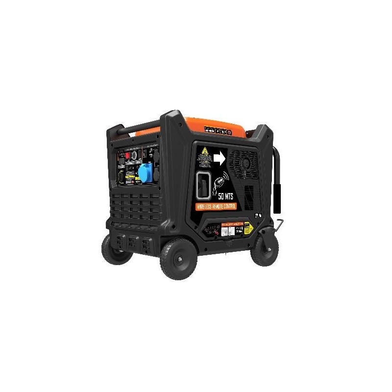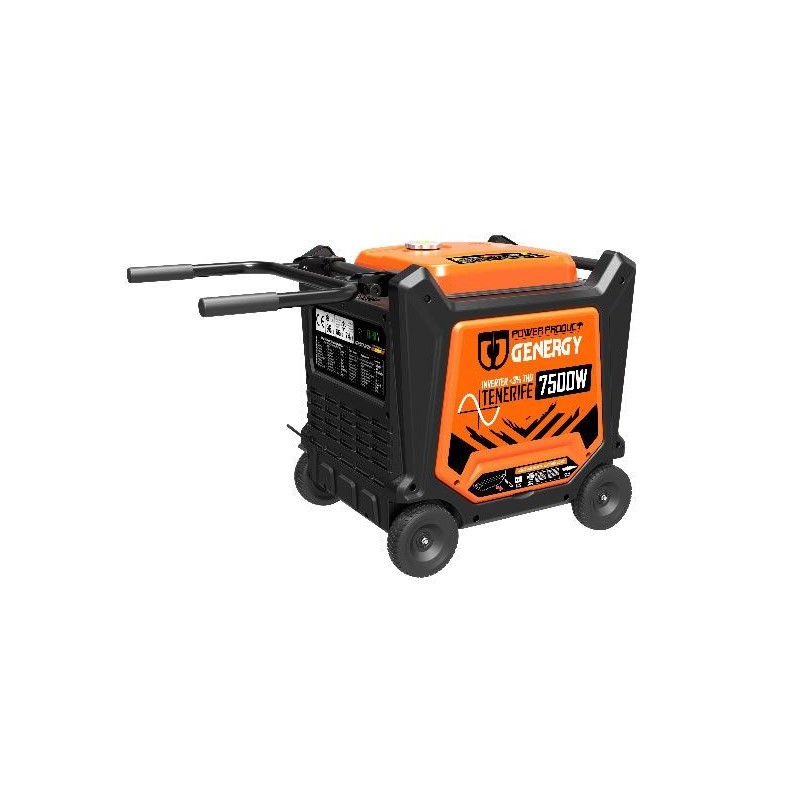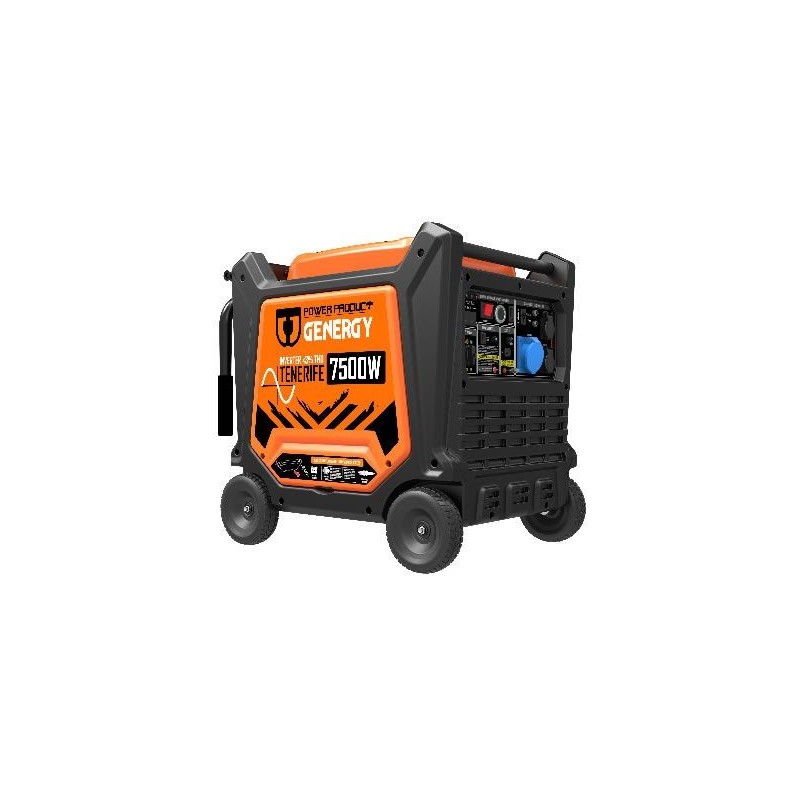 Generador Tenerife 7500W 230V 459cc,monofásico,compacto y ligero,un 25% menos de consumo de combustible.Arranque eléctrico,también manual con mando a distancia .Baja distorsión de armónicos,pudiendo conectar aparatos sensibles.Piloto de aviso de mantenimiento.Retardo de salida de energía para evitar corriente no estable.Gran protección por su diseño,silencioso,ideal para usar en acampadas
