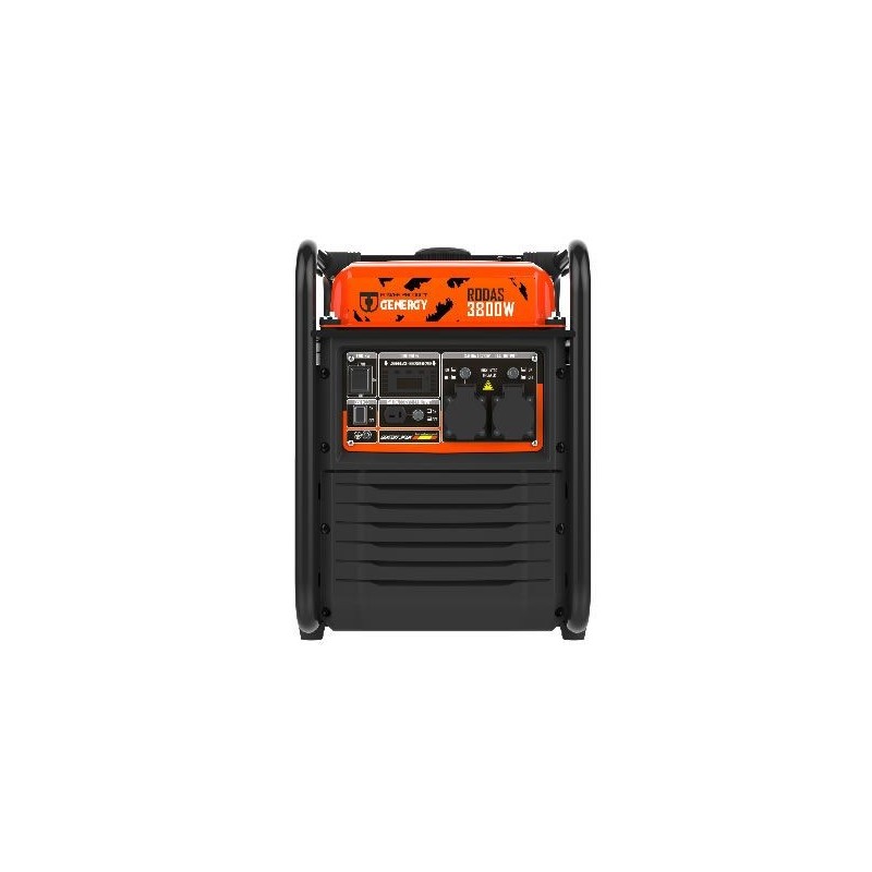 Generador inverter abierto Rodas 3800W 230V 224cc,monofásico,compacto y ligero,un25%menos de consumo de combustible.Arranque eléctrico pulsando un botón,también manual.Baja distorsión de armónicos,pudiendo conectar aparatos sensibles.Piloto de aviso de mantenimiento. Retardo de salida de energía para evitar corriente no estable.Gran protección por su diseño,silencioso,ideal para usar en acampadas