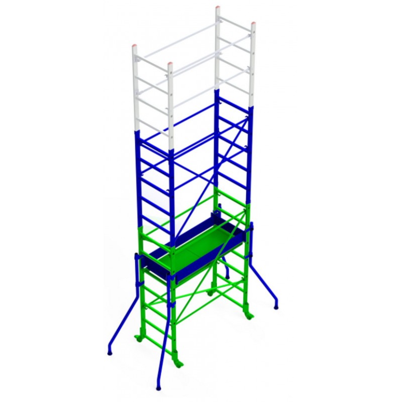 Módulo base + Plataforma + Módulo intermedio + Zócalos + Estabilizadores (PACK-140-1 + PACK-140-2) Andamio de aluminio RAPIDO140 con plataforma de 60x140 cm y altura de 3 m.