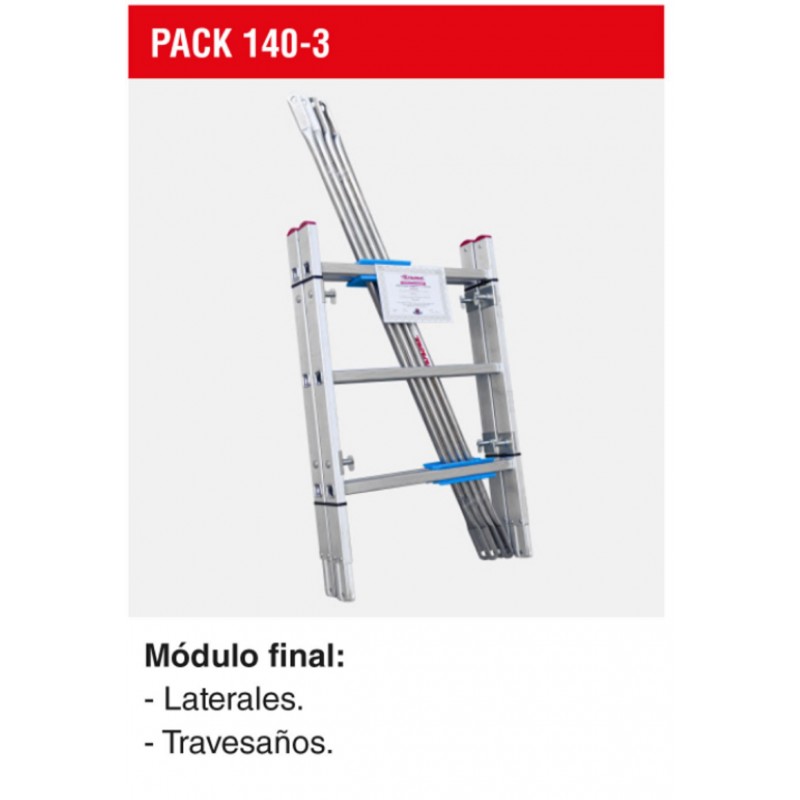 Estabilizadores + Módulo final ( PACK-140-1 + PACK-140-2 + PACK-140-3) Andamio de aluminio RAPIDO140 con plataforma de 60x140 cm y altura de 3.80 m.