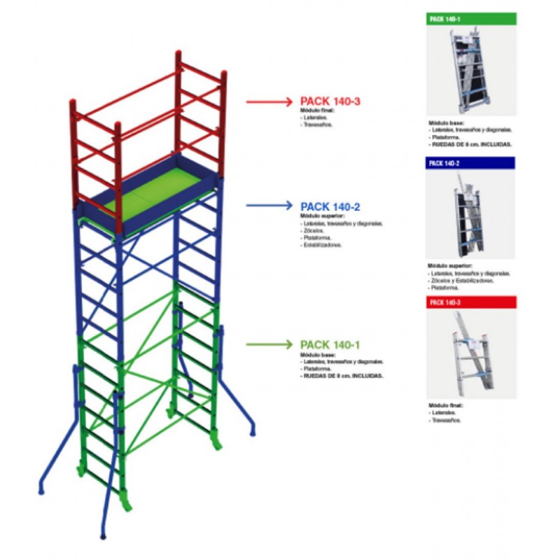Andamio 3.8 M Altura 140x60 CM Ruedas PACK-140- 1 -2 y 3