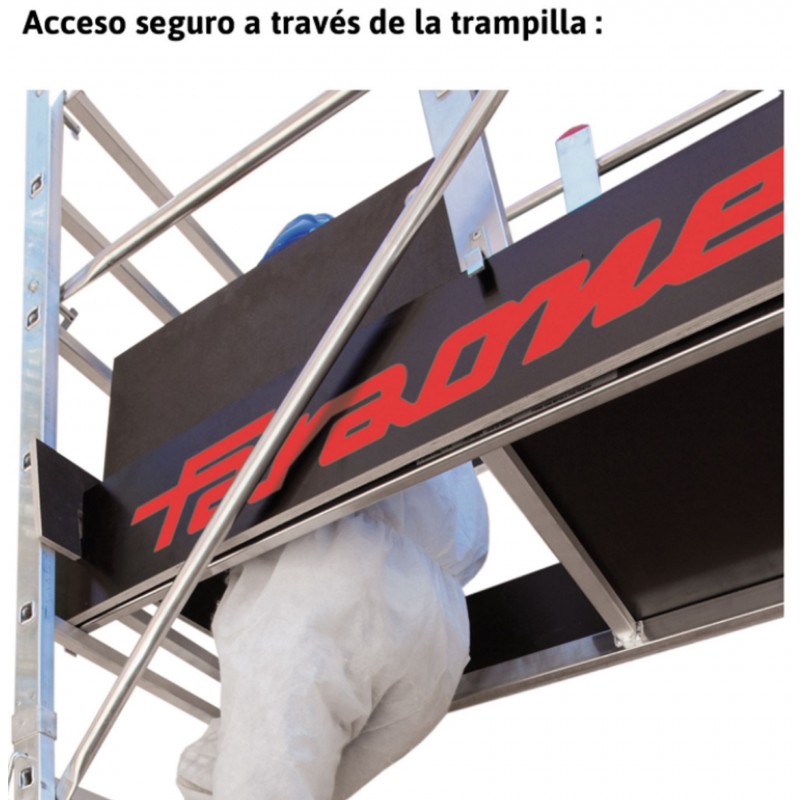 Este producto cumple con la normativa europea EN 1004 y se entrega junto con el certificado de conformidad y el manual de instrucciones, la carga máxima que aguanta es de 150 kg/m2.
