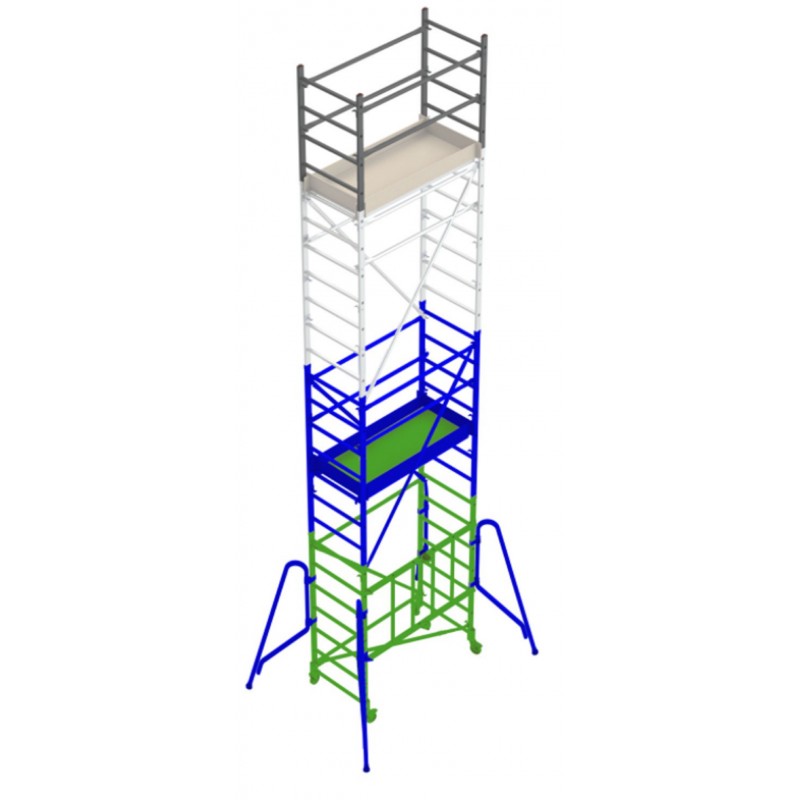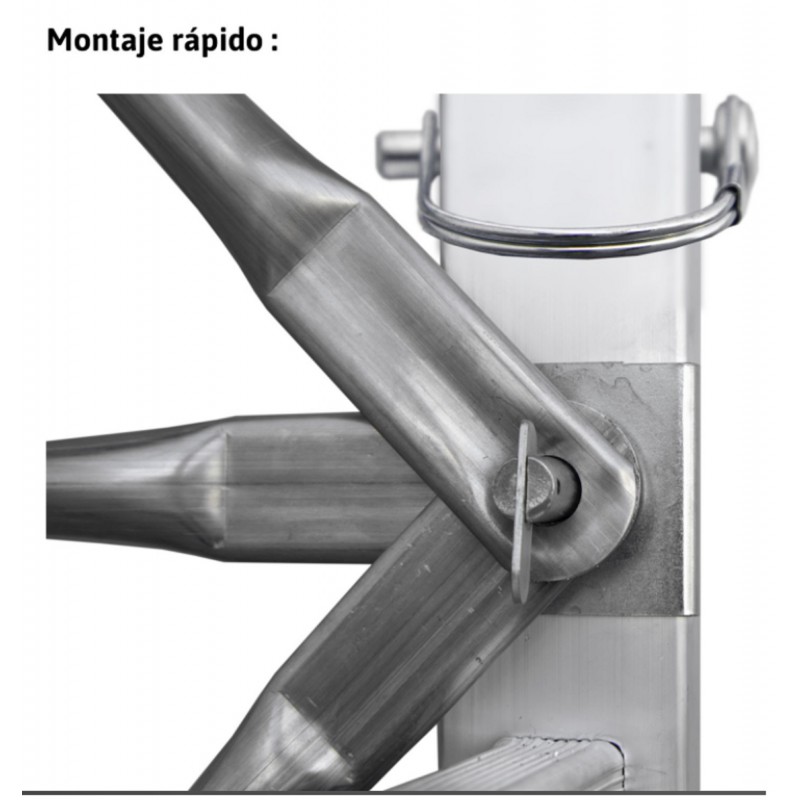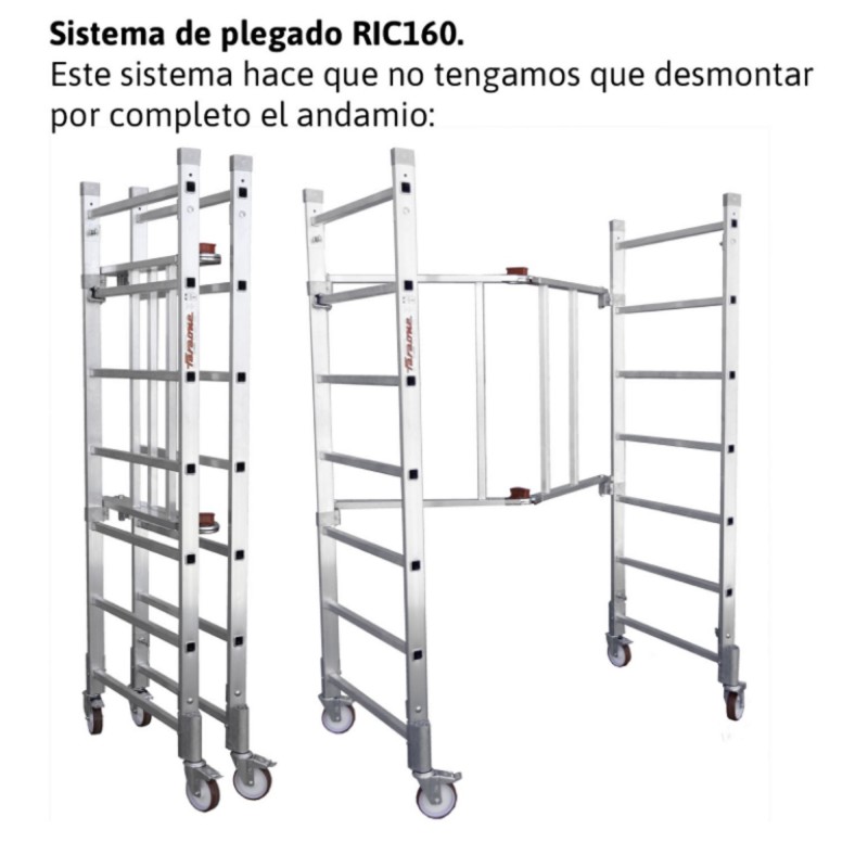 Módulo base + Plataforma + Módulo intermedio + Zócalos + Estabilizadores + Módulo final ( PACK-160-1 + PACK-160-2 + PACK-160-4 ) Andamio de aluminio RAPIDO160, plegable con plataforma de 80x160 cm y altura de 5 m.