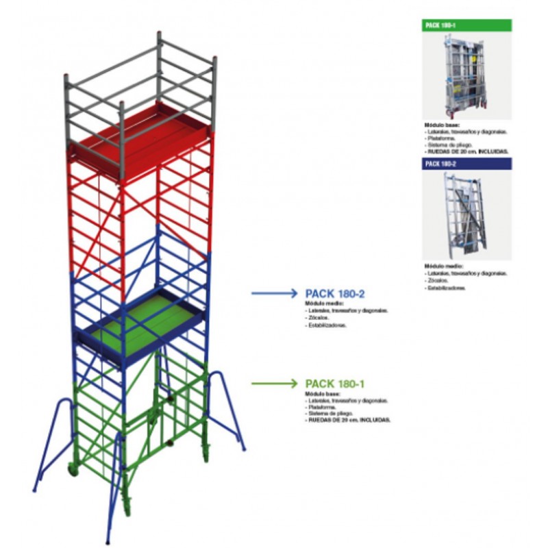 Andamio 4 M Altura 180x105 CM Ruedas PACK 180-1 Y 2