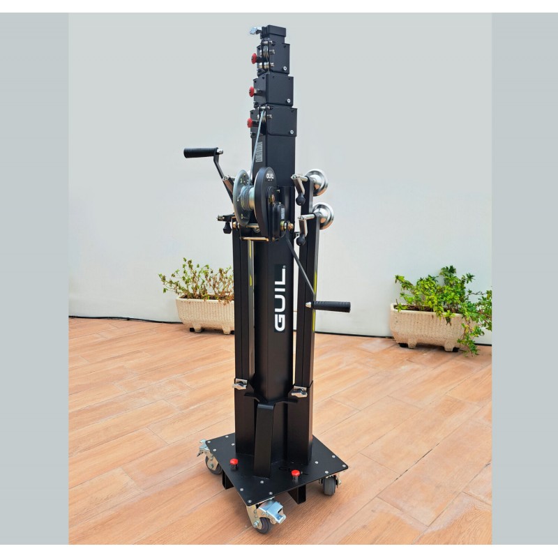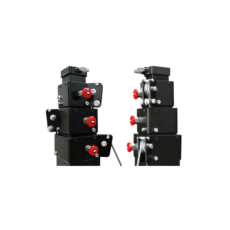 La torre elevadora está compuesta por 4 perfiles/tramos de acero de alta resistencia con acabado en pintura epoxy especial para exteriores. Su acabado nos permite el montaje de la torre elevadora en exteriores, garantizando su buen mantenimiento y evitando la oxidación de sus piezas.