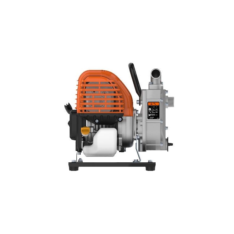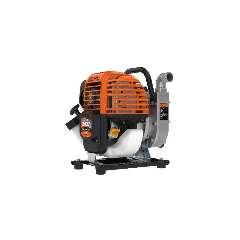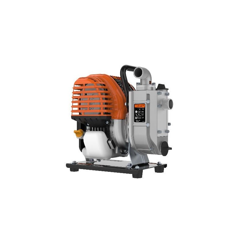 Motobomba portátil DEVA. Su principal característica es su reducido tamaño y peso, lo que permiten ser manejadas comodamente por una sola persona. Ideal para riego, llenado de depósitos, vaciado de pequeñas piscinas o estanques, limpieza de hormigoneras, etc. Tiene un Caudal de 8000 L/H altura máxima total 29M, motor de 31CC.