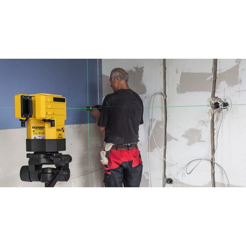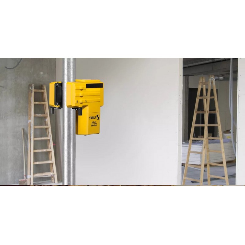 Potente y versátil, así es el láser de líneas en cruz LAX 50 G. Si para Usted como profesional es muy importante disponer de una cruz láser con una visibilidad extraordinariamente buena, entonces le convencerá la innovadora tecnología GREENBEAM de STABILA. La práctica plataforma multifunción es el complemento perfecto para este láser de fácil manejo. Gracias a las múltiples posibilidades de fijación puede colocar el láser a la altura de trabajo deseada. Benefíciese de este auténtico todoterreno en sus trabajos de reforma en interiores.